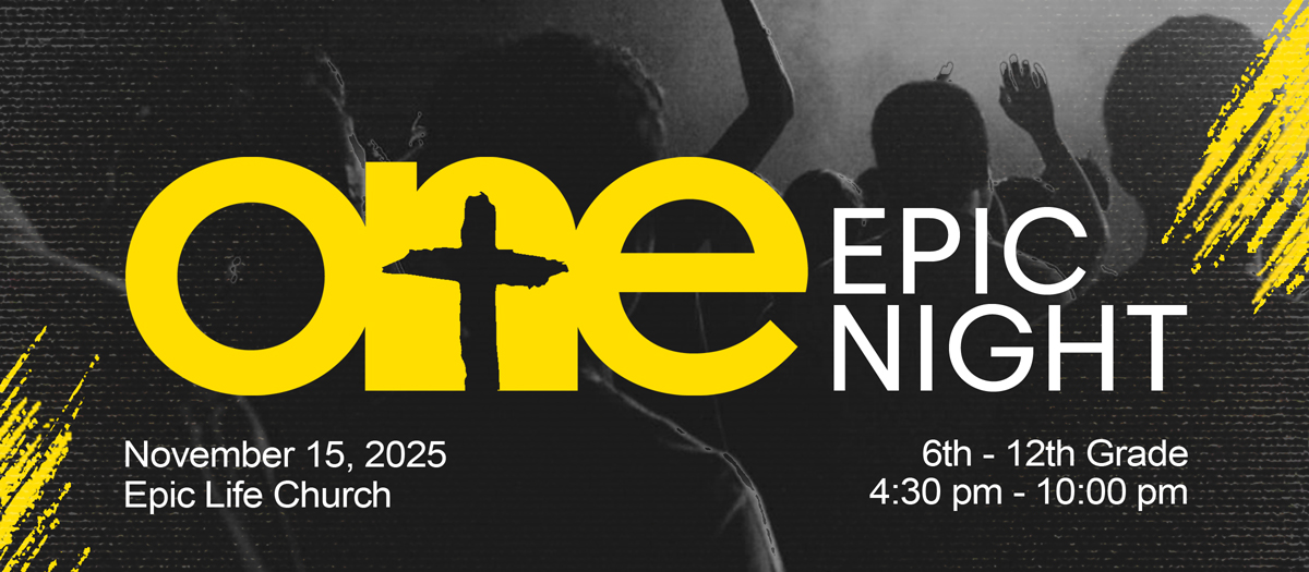 STUDENT EVENT (6TH - 12TH GRADE) SATURDAY, NOVEMBER 15, 2025 4:30 PM - 10:00 PM COST: $29.00 EPIC LIFE CHURCH